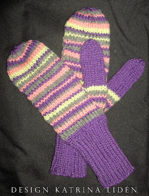 Så utifrån dessa gjorde jag vantarna ovanför, som blev ljusare lila och ljusare färger.