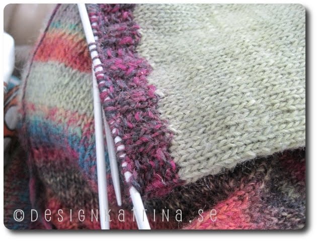 Min kofta fortsätter att växa och göra sig märkvärdig och stolt. Är det inte så man säger om ytterst snygga grejer? 🙂 För ja, den blir superfin! Jättesnygg! Tänk att jag inte har behövt repa upp en gång, lite förarbete vinner man mycket på. Jag visade den för min sambo igårkväll och fick stora beröm. Nu är jag inne på armarnas muddar som är i det underbart melerade lila-gula-gröna-rostbruna-blåa Drops Delight garnet.