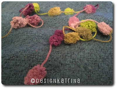 Nåväl, jag började med det i julas. Tänkte det kan ju inte va så svårt och stickade på utan att läsa hur man skulle göra. Det hela ledde till att jag repade upp det- och började om. Som ni ser på bilden så är det pompoms med jämna mellanrum på garnet.