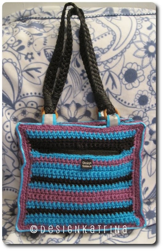 Randigt är härligt! Passopalbanden runt väskan syr jag till själv och är väldigt behändigt när man ska hand-sy fast den virkade delen.