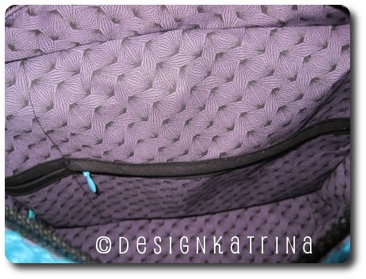 Insidan av väskan kommer här. Fickor, smala och stora och små och breda, det finns nog allt här! Band att hänga nycklar i finns i väskan.