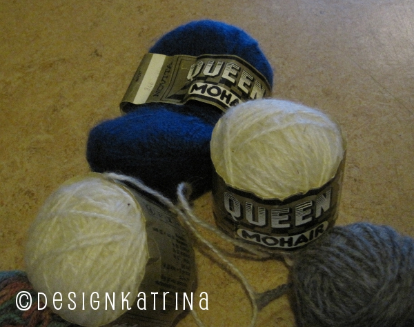 Tre nystan med mohair-garn.