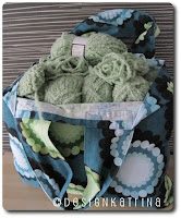 Den blev lagd på hyllan eftersom jag pga bål/rygg-problem inte kan sitta och sy. Mer än halva väskan består ju av tyg. Då tänkte jag att jag inte behöver ha bråttom att göra klart den stickade delen. Bålen/ryggen blir långsamt bättre och jag kanske kan sitta och sy om nån månad, eller kanske rentav några veckor? Vem vet! Då är det ju kul om jag har de stickade delarna så klara som möjligt.