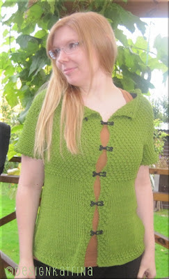 Det tog ett tag att göra den men jag blev riktigt nöjd tillslut. Jag har gjort den ganska slimmad och korta ärmar. Det är mitt mönster, eller snarare hittade på längs vägen.
