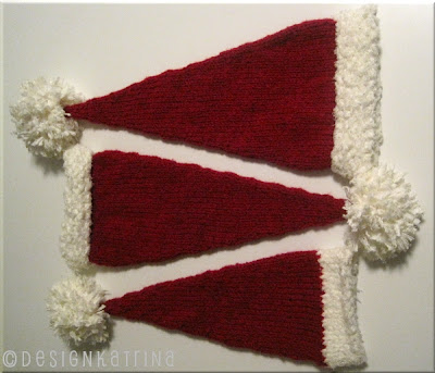 Stickorna går varma: jag har stickat tre röda tomteluvor som blev väldigt fina. Så där som man vill att tomteluvor ska vara: Fluffigt vit och fin röd!