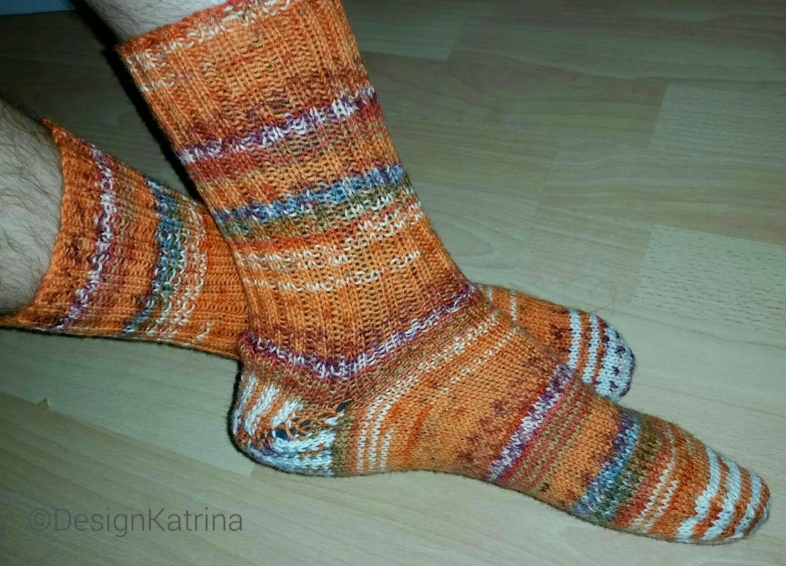 Jag har gjort orange sockar i Fabel förut som han gillar skarpt. Men hälarna var för stora. Så han ville ha samma sorts sockar med mindre hälar.