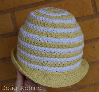 Vad är vårigare än att virka en solhatt till lillan! Än är det mössa som gäller, men värmen kommer snart nog.