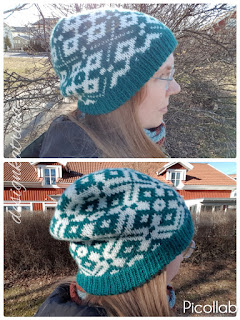 Min dubbelstickade mössa är klar. Så kul och skönt på en och samma gång! Jag har provat mössan lite och den är så otroligt skön o mjuk att ha på sig! Det är en mössa att bo i.