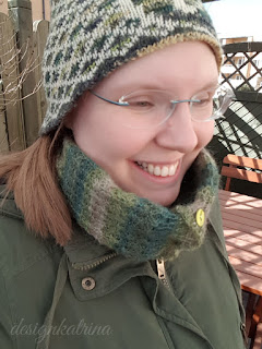 Vilken kontrast när garnet randar åt ett håll, och mönstret åt ett annat:) Kanske syns det extra tydligt för att det är en cowl och inte en halsduk? Men det kommer att värma skönt oavsett:)