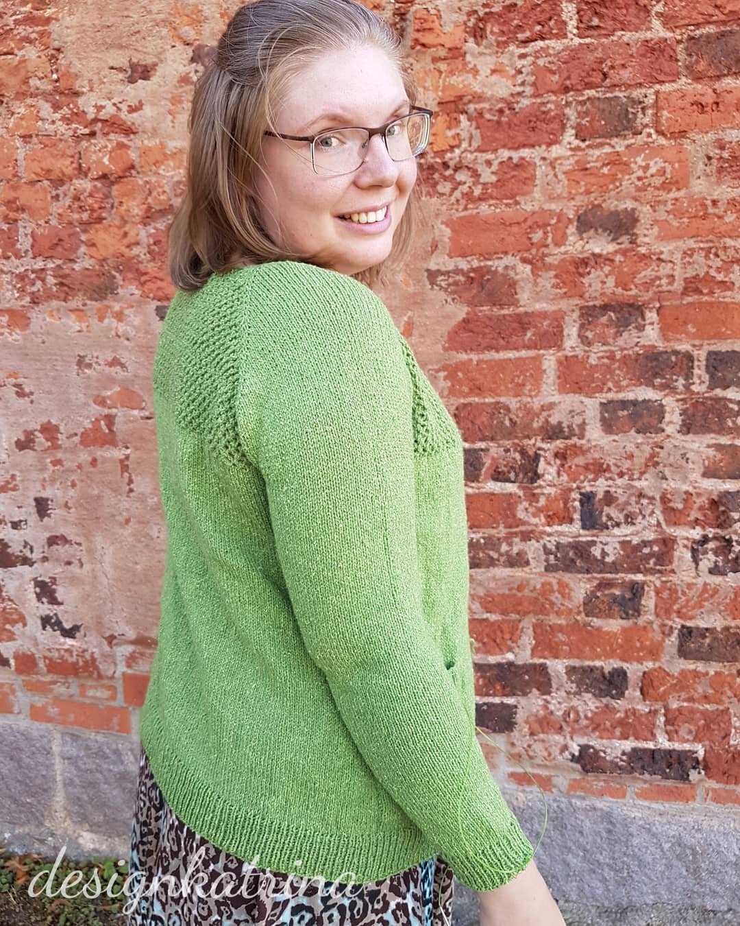 Nu har jag nästan stickat klart första ärmen och har även provat den igen. Visst, idag var det sådär varmt igen. Men jag provade den, vi tog lite snabba kort och så åkte den av igen. Det är bara att köra vidare det sista nu. Så kommer jag ha en fin kofta till hösten!