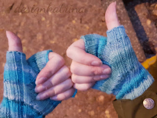 I samma veva så frågade en gammal vän om jag kunde sticka halva vantar att jobba i och det passade ju bra. Så jag tog ett garn som legat i en garnlåda här hemma en hel del år, ett blått Fabel. De blev väldigt fina!